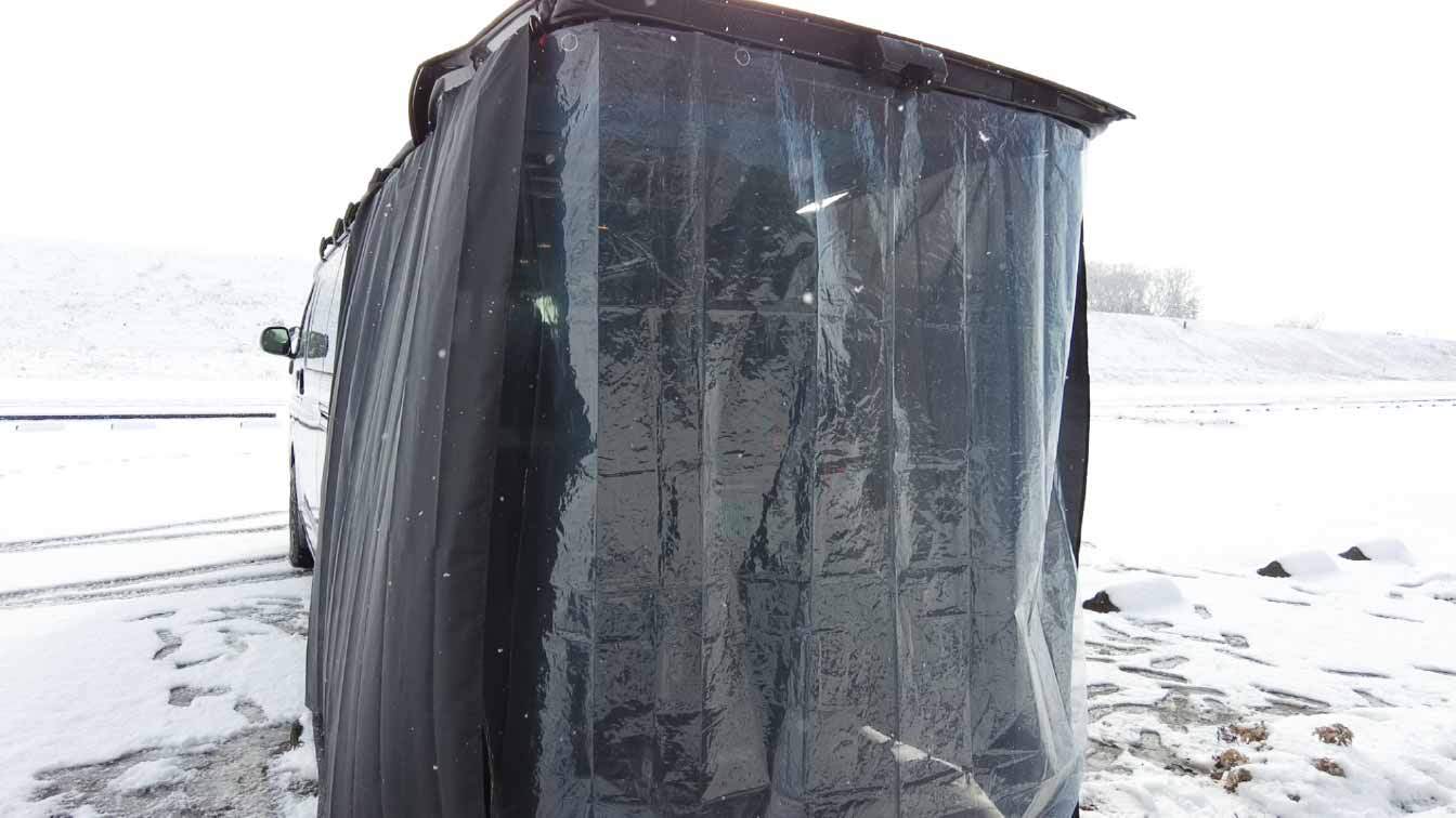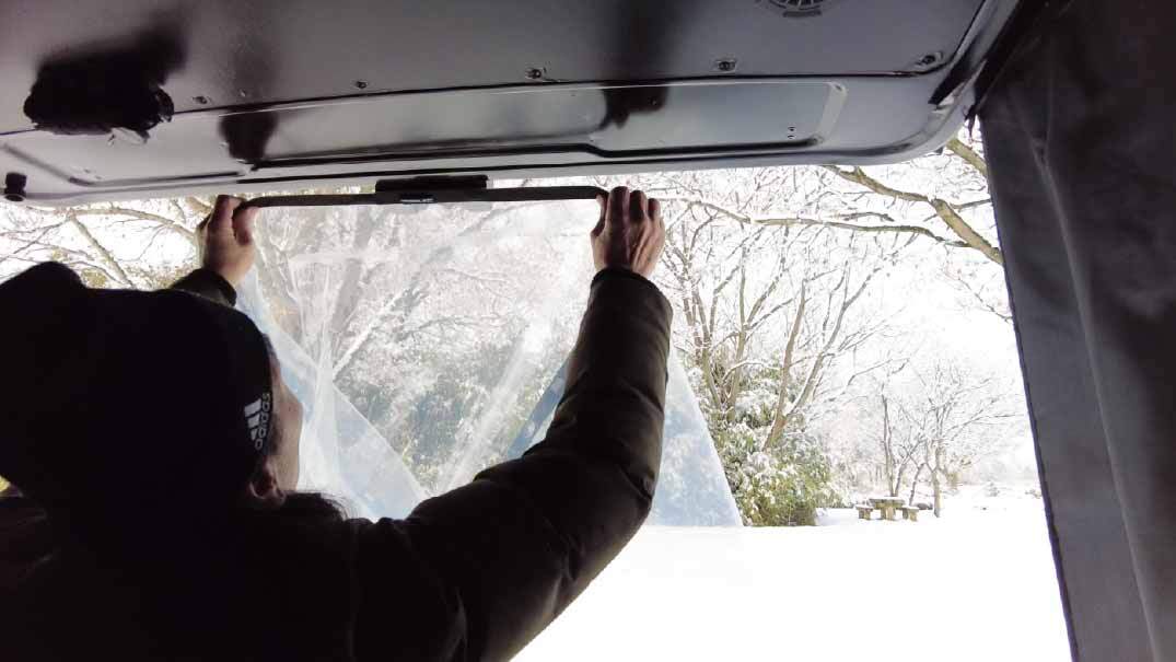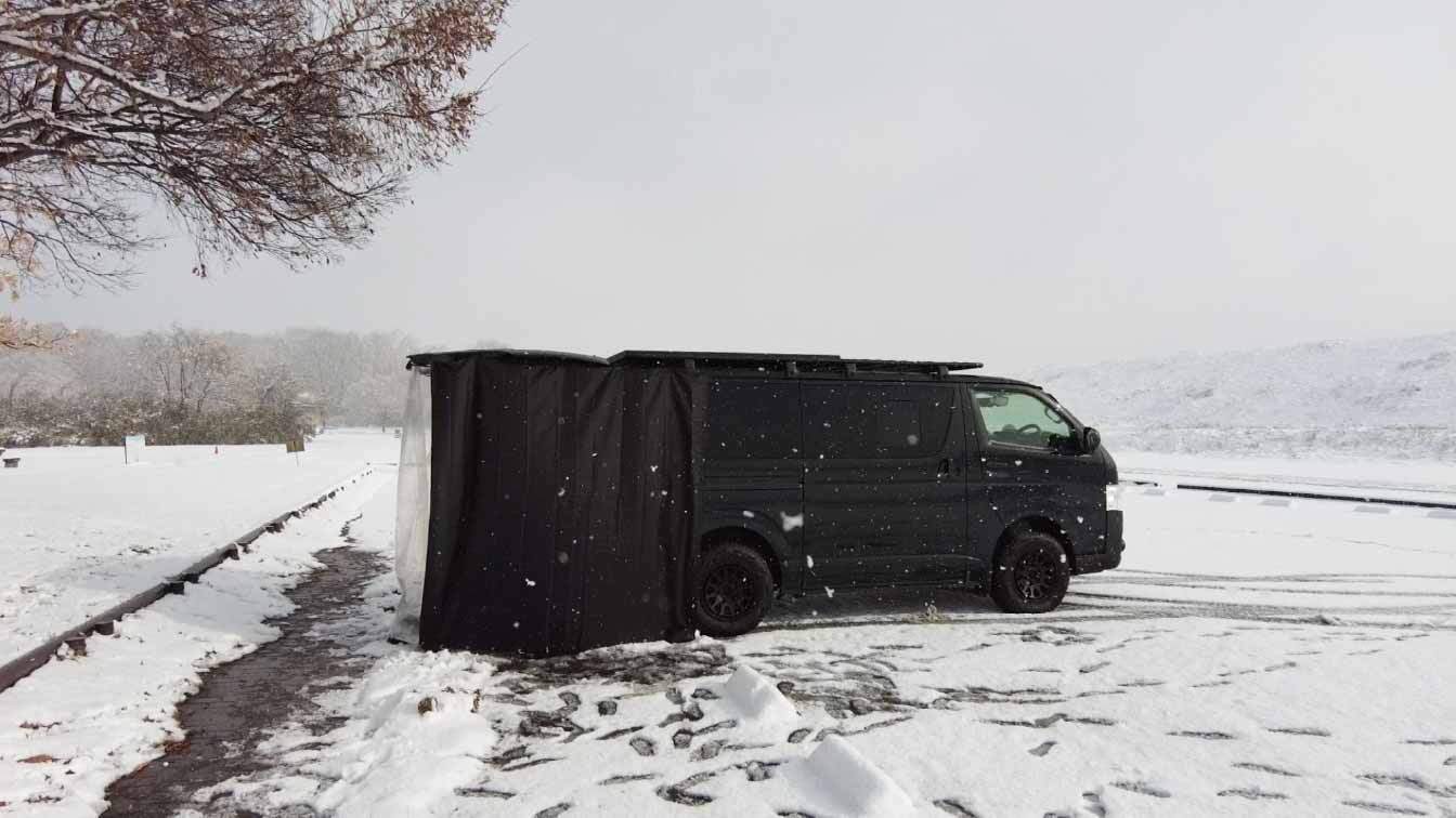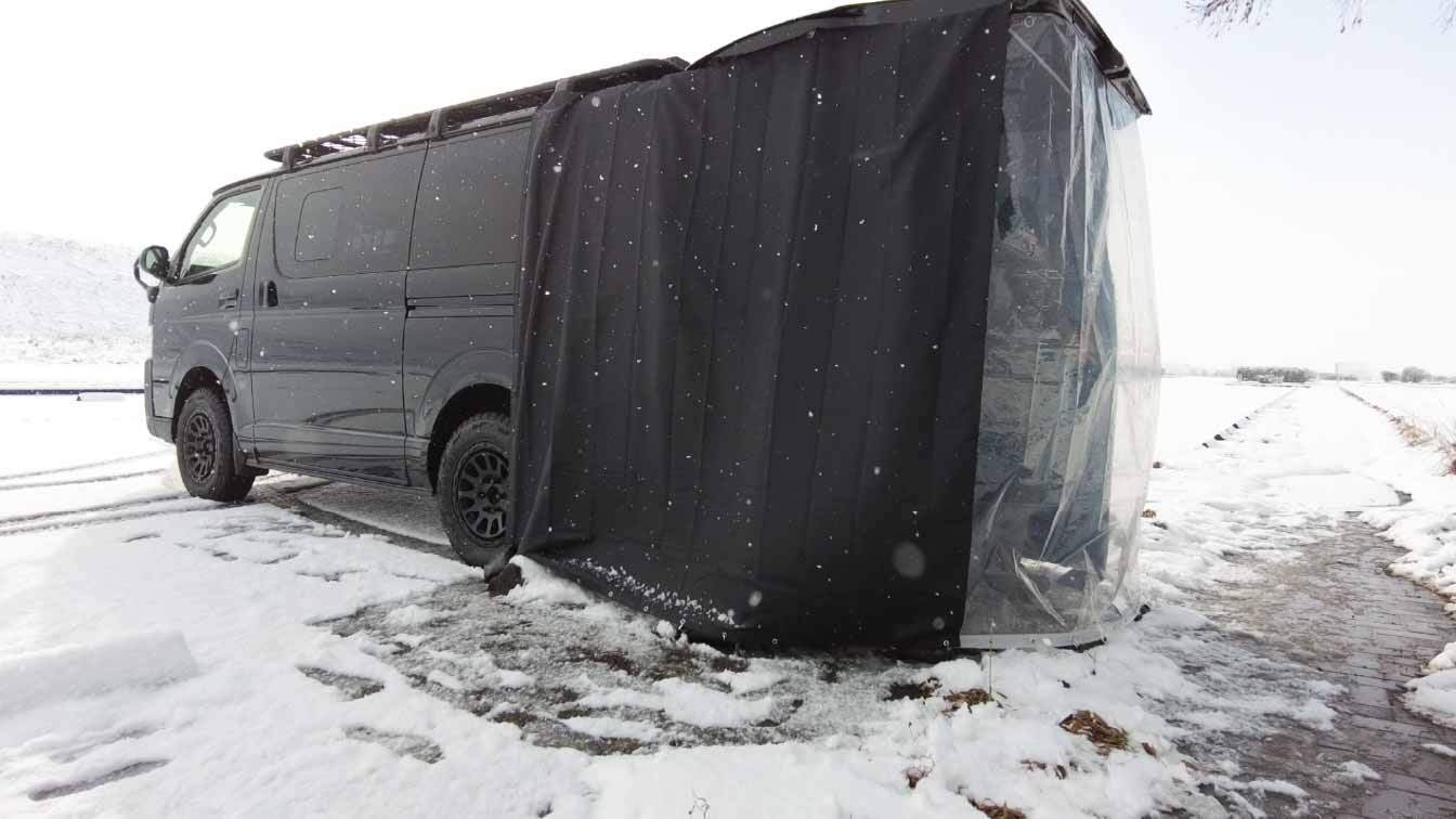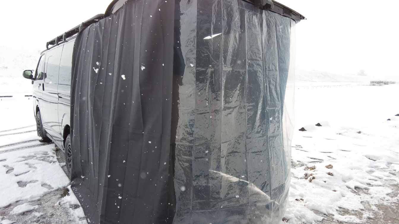 *バックドアカーテンで防寒しながら景色などが楽しめます。